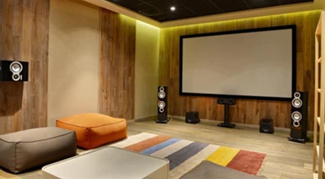 大画面テレビやサラウンドシステムをより効果的にみせる内装や照明で、こだわりのシアターを実現しましょう。