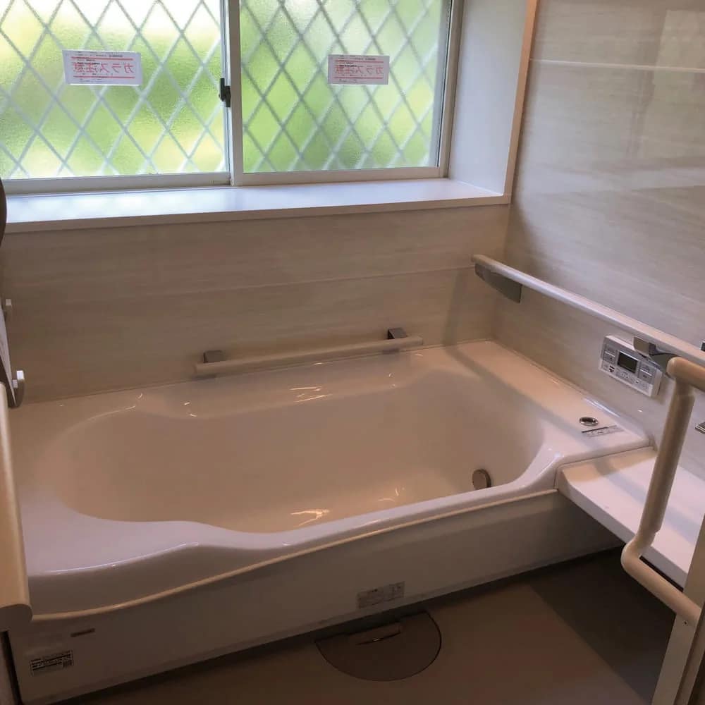 浴槽横に手すりを取り付けることで、足腰の負担を軽減し