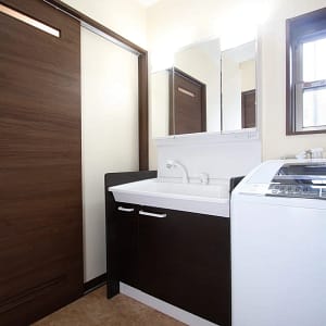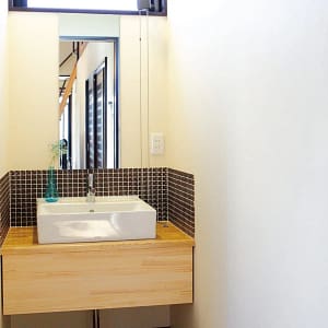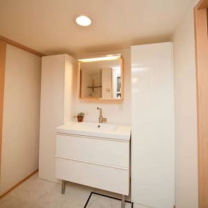 【福岡市西区】洗面台リフォーム:ナチュラルな温かみを感じる洗面台でボタニカルな空間へ