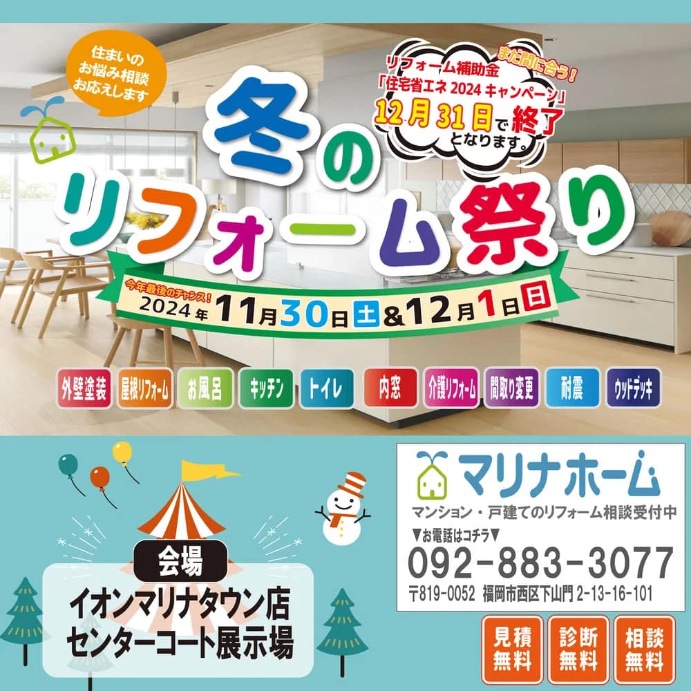 【今週末いよいよ開催】冬のリフォーム相談会inイオンマリナタウン店 【11月30日&12月1日】
