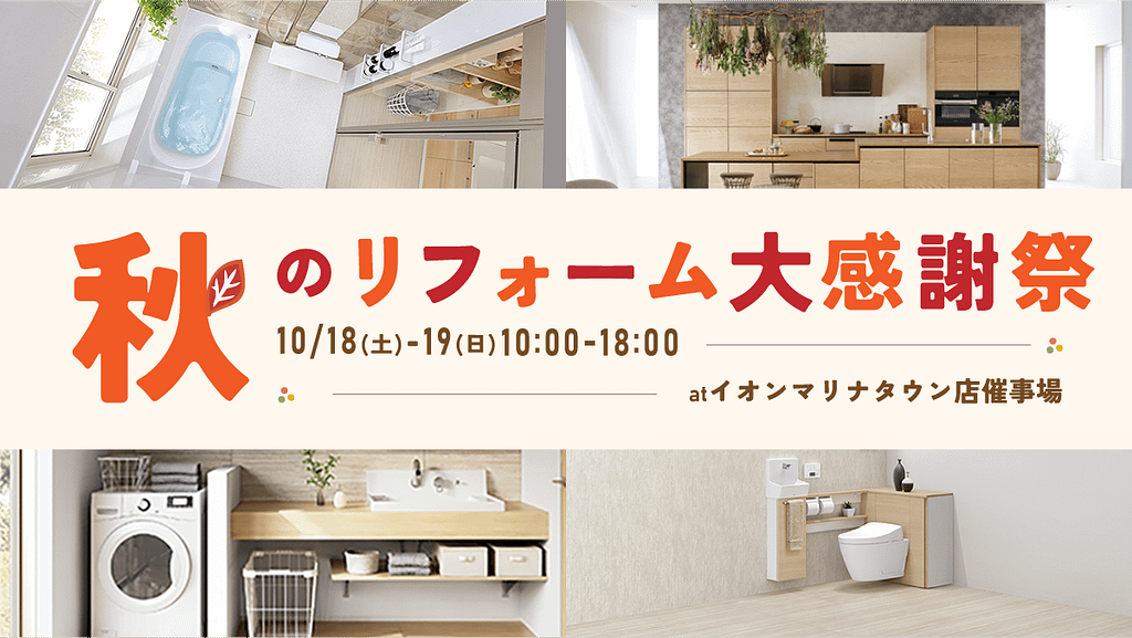【10/18・19開催】いよいよ今週末開催!秋のリフォーム大感謝祭@イオンマリナタウン店