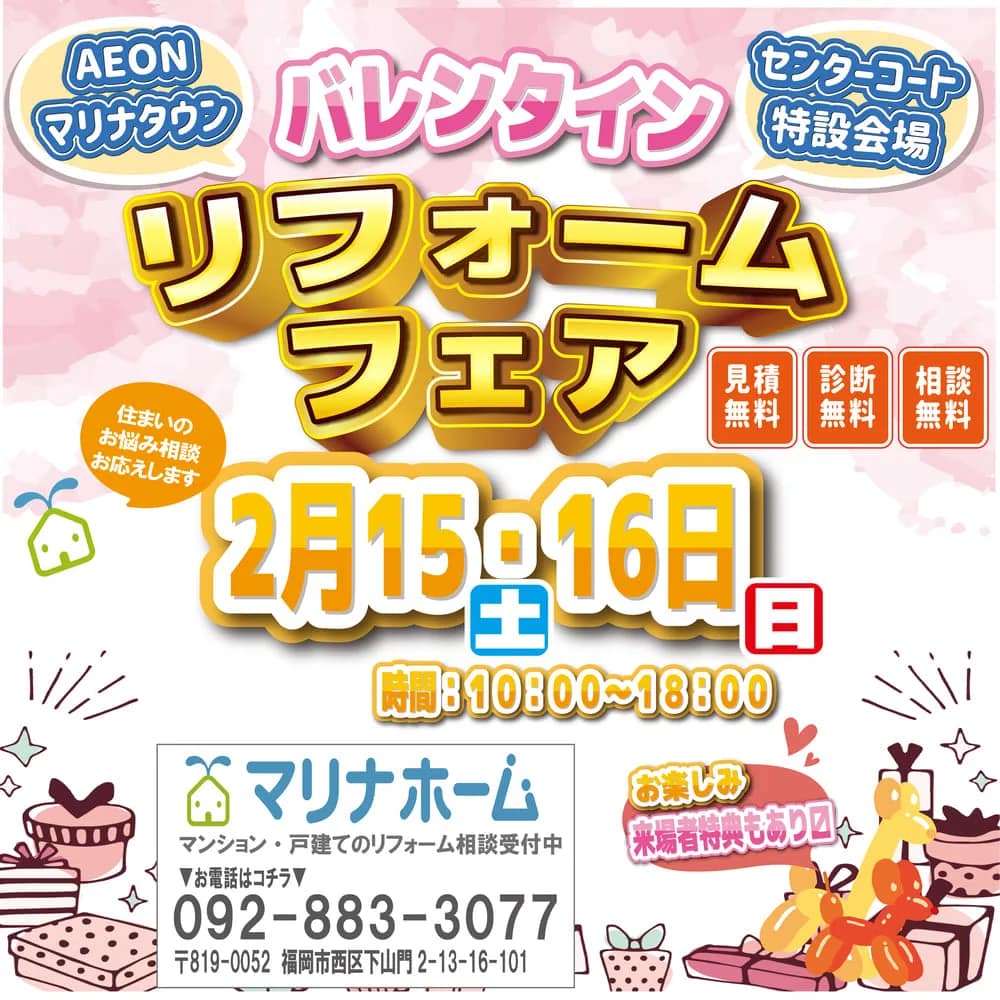 バレンタインリフォームフェアinイオンマリナタウン店 【2月15日・16日】