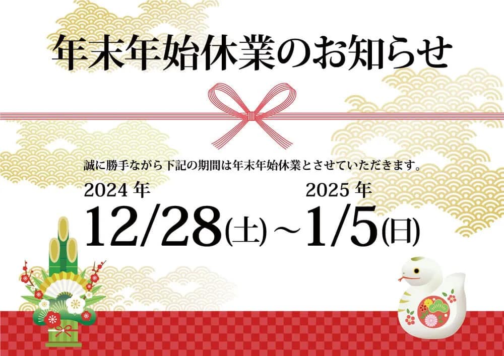 ※期間中のお問合せに関しましては緊急の場合などを除き翌5日以降のご対応とさせていただきます。