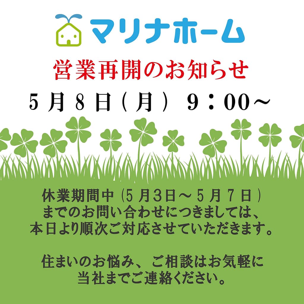 【GW明け営業再開のお知らせ】
